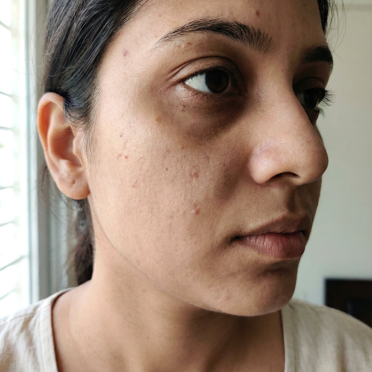 I had small pimples and uneven texture like this, and within two weeks of using Love, P Facewash and White Waters, my skin started clearing up noticeably. My face feels calmer, more balanced, and much healthier now